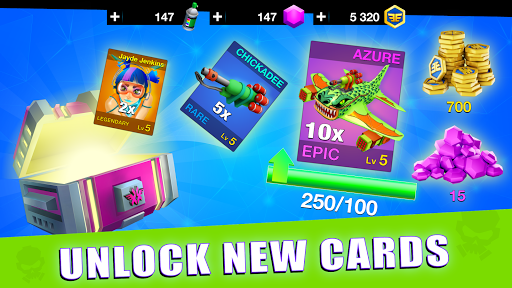 - 모든 승리와 함께 발견, 잠금 해제 보상에 가슴을 적립! 강력한 새 카드 및 기존 카드를 업그레이드합니다. 카드 컬렉션을 만드십시오. 이것은 당신의 적 앞에서 한 단계 앞서 할 수있는 기회입니다. 다른 속도, 갑옷 및 무기가있는 전투기. 전투의 과정을 결정할 프로처럼 그들을 통제하는 연습.