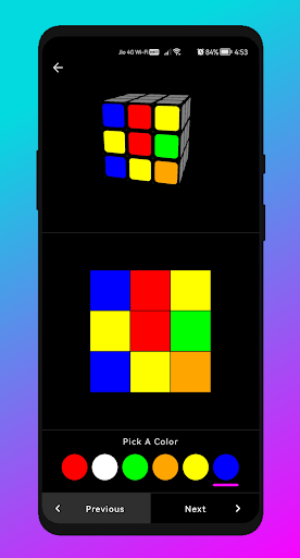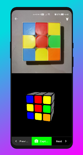 3x3 Rubik의 카메라 솔버 ' s Cube, 앱은 카메라를 사용하여 큐브 색상 상태를 스캔하고 사용자는 색상을 수동으로 입력 할 수 있습니다