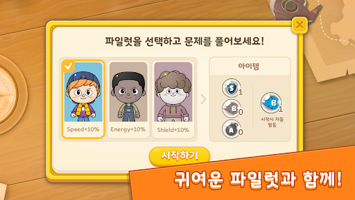 유저는 자신의 연산 능력에 따른 적절한 난이도의 문제를 부담없이 풀고 게임에 유리한 아이템들을 획득할 수 있습니다.