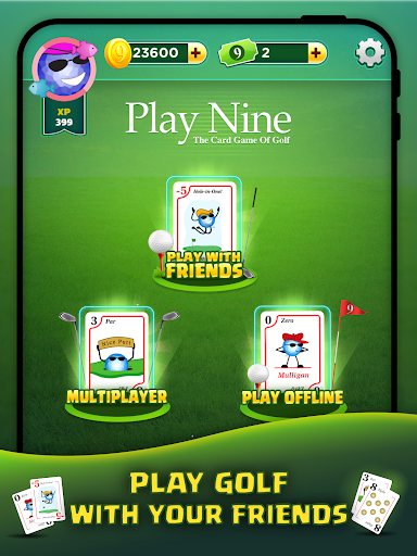 시장에서 가장 많이 팔린 골프 게임, 플레이 : 골프의 카드 게임은 이제 모바일입니다! Play Nine, The Free Golf Game을 다운로드하고 멀티 플레이어 게임 모드 (친구 및 멀티 플레이어와 함께 플레이)
