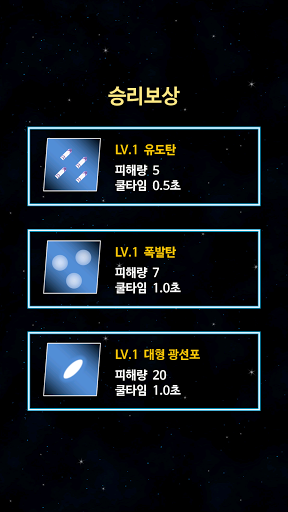 직진 공격이 장점인 광선포, 적을 따라가서 파괴하는 유도탄, 스플래시 데미지를 주는 폭발탄, 적을 관통하는 관통파, 인공행성 주위를 돌아가는 레이저와 위성 등을 업그레이드하면서 적의 공격으로부터 살아남아야 합니다. 인공행성의 에너지를 업그레이드하면 적들의 공격으로부터 더 오래 견딜 수 있습니다.