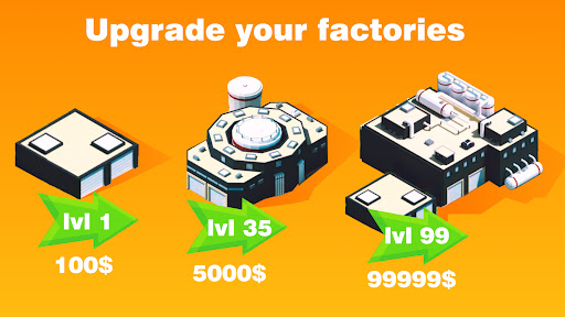 공장을 건설하고 업그레이드를 위해 자금을 재투자하고 분당 수익을 높이세요.