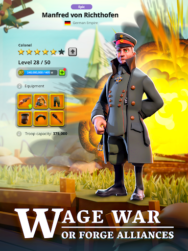 군대를 만드고, 영웅을 무적의 군사 장비로 장비하고 전장에서 패권을 증명하십시오. 영국, 독일어, 러시아어, 오스트리아 - 헝가리어, 오스만, 프랑스 또는 미국 육군에 속하는 WW1 군사 장비를 사용하십시오. 오늘 군대와 전술을 테스트하십시오!