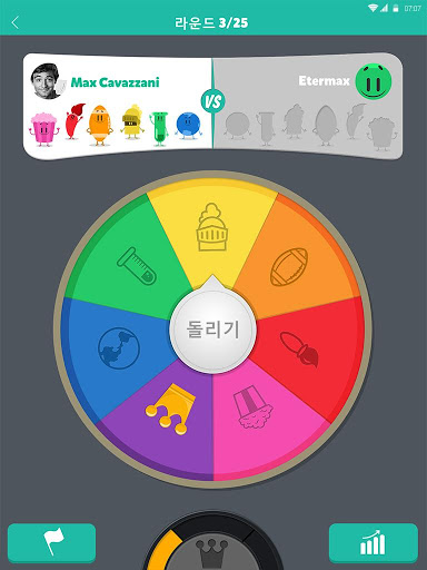 저희의 친구인 상냥한 휠 윌리가 여섯 카테고리 중 답변하실 질문을 선정할 것입니다. 첫째로 여섯 개 왕관을 획득하고 승리하세요. 그러나 재대결을 조심하세요!