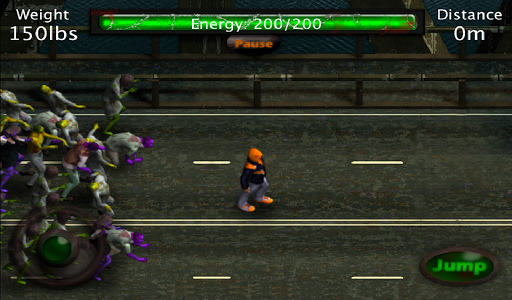 The zombie pandemic is upon you, and despite what’s been portrayed in TV and Movies, all you can do is run away from them. But running takes up energy - lots of energy. Thankfully there are food items scattered about that you can still consume, but in the process you pack in the pounds. The heavier you are, the more energy is used just to run. So now it’s a matter of balancing the need of energy to gaining weight. How far can you go before the unrelenting zombies take you down?