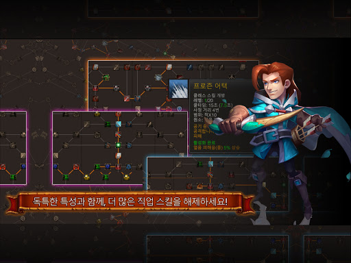 스킬: 100가지가 넘는 액티브, 패시브, 클래스, 특성, 일반 공격 등 스킬석을 자유롭게 조합하여, 강력한 파별을 구성하고 직업의 한계를 돌파하세요