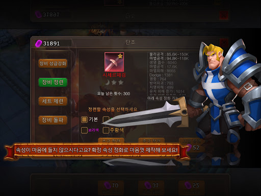 장비: 일반, 우수, 유닉, 에픽, 전설, 마스터, 세트, 성장 장비 등, 다른 유형의 장비를 강화 및 진급시켜 속성 신병을 만들어 보세요