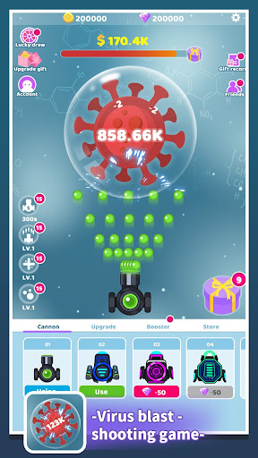 & gt;화면을 탭하여 대포를 시작하여 바이러스, 단순하고 재미있는 것을 공격합니다.