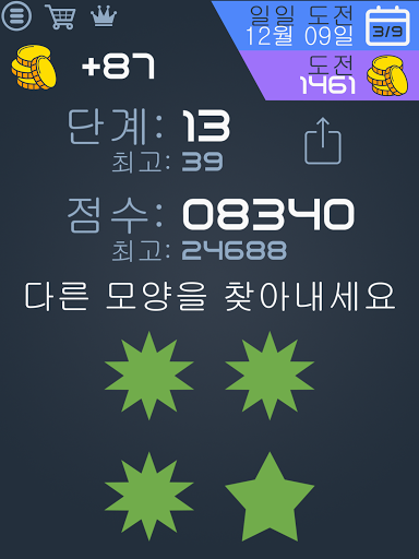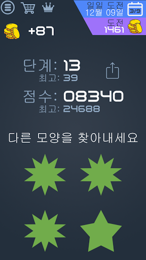 화면에 여러 모양이 표시되면 유일하게 다른 모양을 누르세요. 3초 이내에 해야 합니다! 당신은 얼마나 오래 걸릴까요?