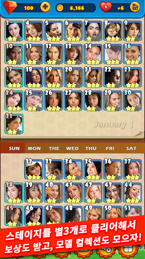 ▶ 스테이지를 클리어할때마다 모델 이미지를 모아 달력을 완성한다.