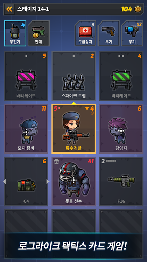 무기, 캐릭터의 체력, 폭탄으로 적과 바리케이드를 공격하고 구급상자로 캐릭터의 체력을 회복하면서 골드를 모아 포인트를 올립니다. 보급품 카드를 얻으면서 많은 포인트를 올리면 새로운 스테이지와 캐릭터를 획득할 수 있습니다. 또한 스테이지에서 얻은 골드로 캐릭터의 능력, 새로운 보급품 카드를 잠금해제할 수 있습니다.