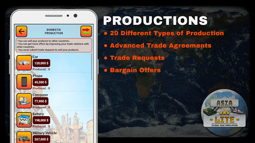 ● 국가에서 광산을 연구, 가공 및 판매함으로써 돈을 벌 수 있습니다. ● 공장에서 제작을하십시오. ● 무역 요청을 보내 다른 나라와 무역.
