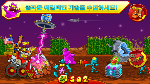 Pops 할아버지의 농장에 UFO가 나타났습니다! 신기한 무기가 가득 찬 대형 무기고를 사용하여 에일리언이 옥수수를 훔치지 못하게 막으세요. 옥수수 트랙터에 타고 작고 파란 침략자의 씨를 모조리 말리세요! 무장한 우주선이나 위험한 장애물도 귀하가 세계 최고의 에일리언 사냥꾼이 되는 것을 막지 못합니다! 에일리언 트랙터 빔을 피하고 막강한 파괴력을 가진 화성 트롤에 맞서 Pops의 옥수수 농장을 영웅적으로 지키세요!