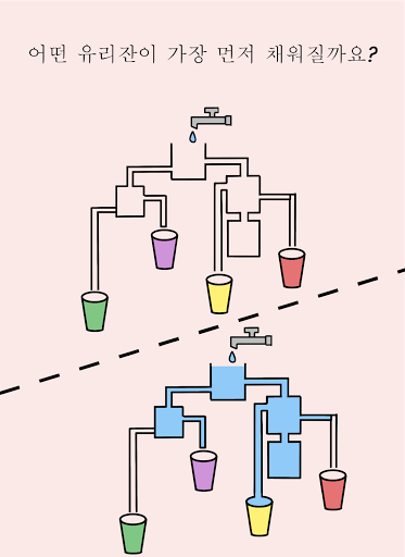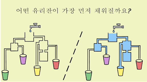 1. 어떤 유리잔이 먼저 채워질 지 알아보세요;