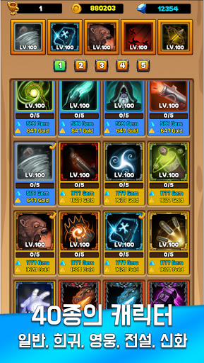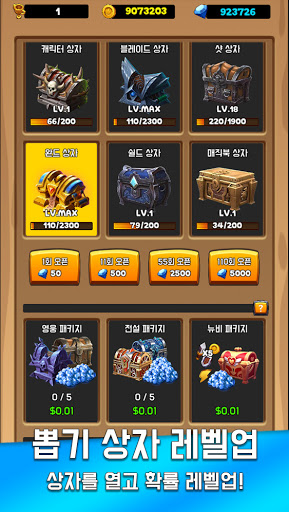 - 보상으로 얻은 보석으로 상자를 열어 캐릭터와 장비를 획득.