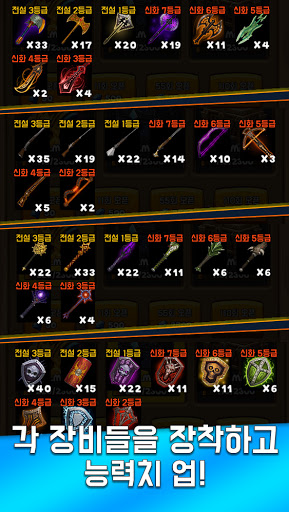 - 중복되는 장비를 모아 승급하여 상위 등급 장비 획득!
