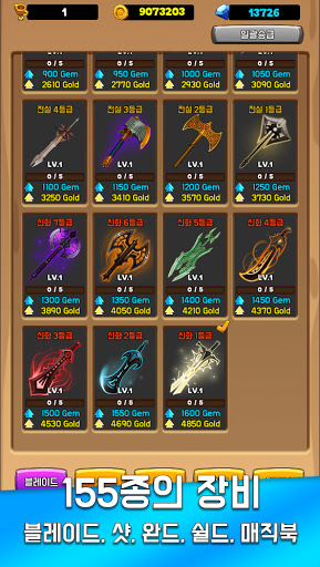 - 장비 블레이드, 샷, 완드, 쉴드, 매직북