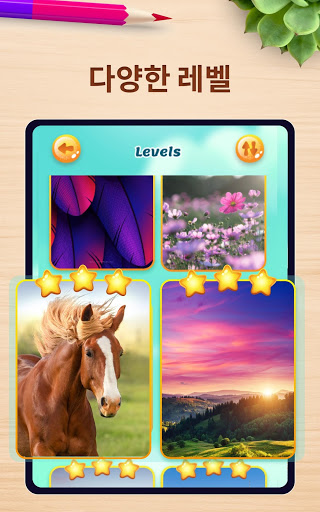 게임 난이도는 퍼즐 조각의 수에 따라 결정됩니다.