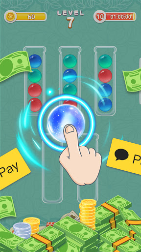 1. 시험관을 탭하고 시험관 위에있는 공을 시험관 입구로 이동 한 다음, 목표 위치를 클릭하여 이동시키는겁니다.두 공이 같은 색이고 이동하려는 시험관에 충분한 공간이 있어야 합니다.그렇지 않으면 이동할 수 없습니다.