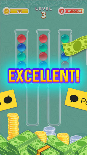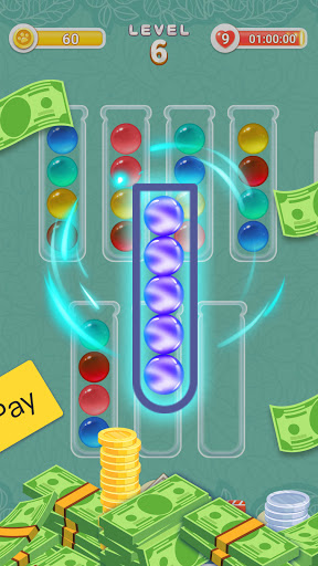 3.목표는 같은 색의 모든 공을 하나의 튜브에 쌓는 것이며, 게임이 중간에 완료되지 않을 경우 시험관을 추가하면 쉽게 플레이할 수 있습니다.