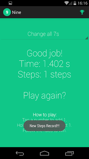 간단하지만 재미있는 게임 : 당신이 변경할 수있는 9 개의 번호 필드가 있습니다.최대한 빨리 또는 사용 가능한 한 적은 단계로 사용하십시오! 심지어 > - 모두 변경 이 게임은 Android 용 Tasker로 만들어졌습니다.
