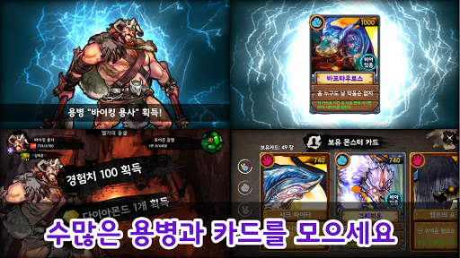 다양한 던전을 탐험하여 몬스터를 이기고 몬스터 카드와 보스 몬스터 카드를 획득하세요.