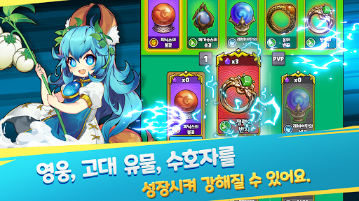 - 영웅, 고대 유물, 수호자를 성장시키고 강화하여 강력한 적을 물리치세요.