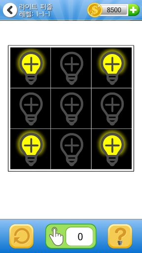 라이트 퍼즐은 멋진 두뇌 개발 게임입니다. 전구를 터치하여 전원을 키고 끄세요.