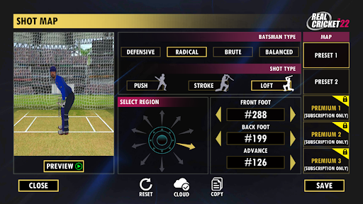 원하는 샷을 선택할 수있는 샷 맵. 각 플레이어에게 독특한 타격 스타일을 만듭니다. 이 타격 샷의 여러 사전 설정을 만들고 경기 상황에 따라 모두 사용하십시오. 그건 아니에요! 당신은 사전 설정 코드를 보내서 친구들 과이 사전 설정을 공유 할 수 있습니다.
