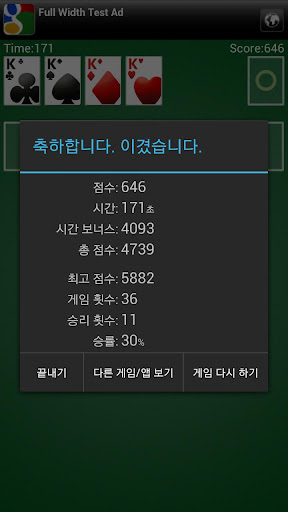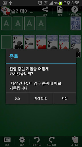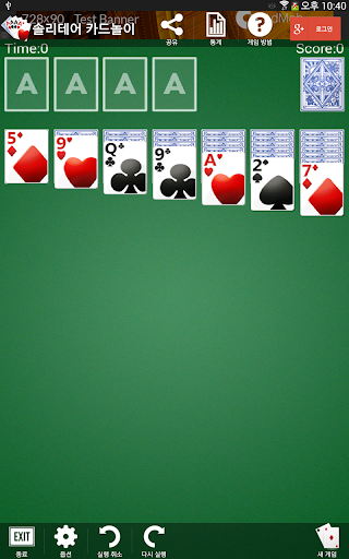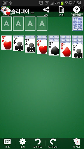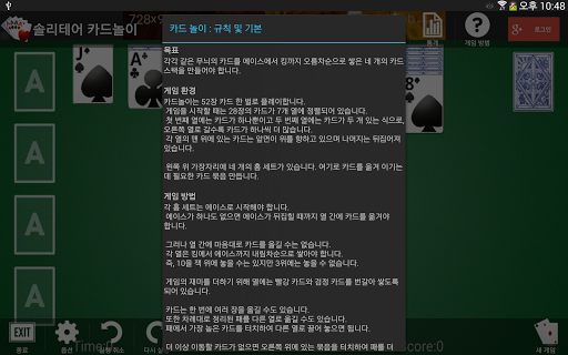 각각 같은 무늬의 카드를 에이스에서 킹까지 오름차순으로 쌓은 네 개의 카드 스택을 만들어야 합니다.