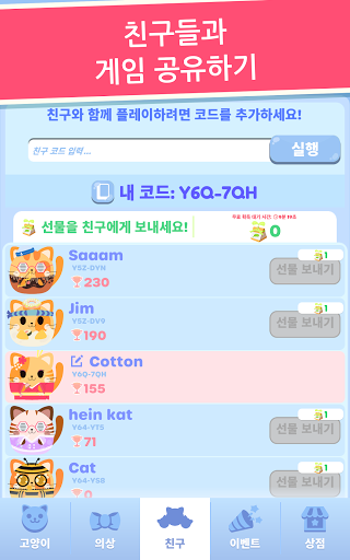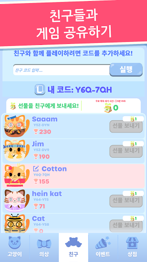 •친구를 추가하고 고양이 사진을 공유하세요.
