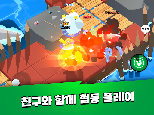 팀전 : 4:4로 맞붙는 팀 배틀입니다. 협동을 통해 팀을 승리로 이끄세요.