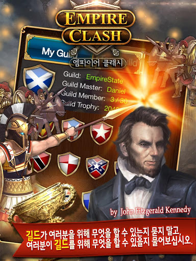 - 엠파이어 클래시의 하이라이트는 길드입니다. 길드에 가입안하는 유저는 연민정없는 장보리를 보고 있는 것입니다. 길드의 성장에 기여하고, 길드워에서 승리하세요!