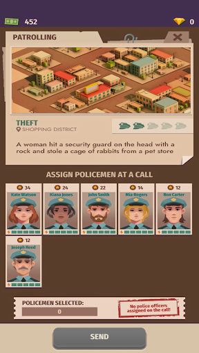 범죄는 항상 일어나고 작은 픽업에서 인신 매매까지의 픽업을합니다. 그 일의 복잡성을 평가하고 범죄자를 잡으려고 경찰관을 할당하고 경험이 풍부한 경험이있는 경험이 가장 많은 마약 딜러를 잡을 수 있으며 초보자는 사소한 도둑질을 위탁 할 수 있습니다. 조심하십시오 - 전화의 응답 시간이 제한되어 있으므로 경찰을 빨리 선택해야합니다! 한 명의 경찰관에 의해 모든 작업을 수행 할 수있는 것은 아닙니다. 어려운 작업은 완전 경찰 팀이 필요할 수 있습니다! 또한 가짜 전화가있을 때도 있습니다.이 경우 경찰은 헛되이 전화로 가고 도시는 보너스를 지불하지 않을 것입니다.