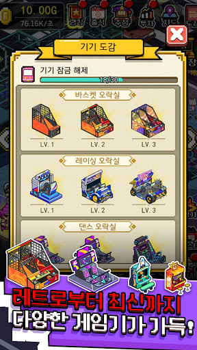 오락실 키우기는 대형 게임센터의 CEO가 되기까지를 그린 경영 게임입니다.