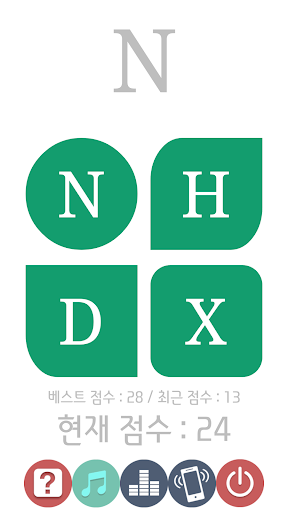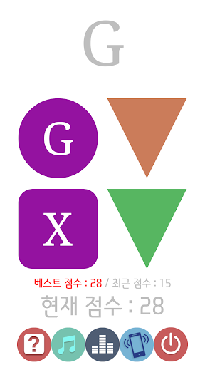 만약 틀렸다면 점수는 0점으로 초기화되며 방금 터치해서 틀린 도형의 가려진 문자를 보여줍니다.