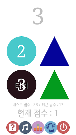 정답인 도형을 터치할 때마다 1점씩 점수가 증가합니다.