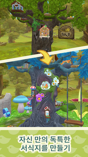 - 새집, 둥지, 가구를 선택하고 만들어 나무를 설계하세요. 모든 나무는 저마다의 개성이 있어요!