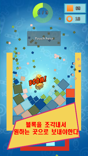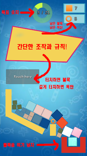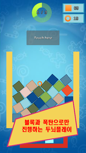 • touch here 버튼을 길게 누르고 있으면 블록을 폭파할 수 있는 폭탄이 생깁니다.