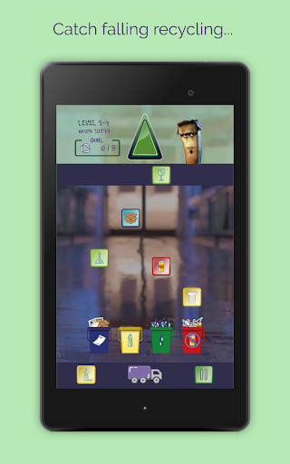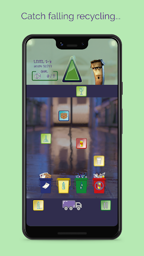- PLAY in arcade mode, where you must move fast to catch the falling recycling in the correct bin!