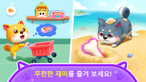 여러분의 강아지와 밖으로 나가 즐거운 시간을 보내 보세요! 강아지와 함께 그네를 타고, 트램펄린에서 뛰어보기도 하며, 맞추기 게임도 해볼 수 있답니다! 이뿐만이 아니에요. 마트로 쇼핑을 하러 갈 수도 있고, 시골길로 산책을 하러 가거나 해변으로 휴가를 떠나는 등 다양한 활동을 할 수 있어요.
