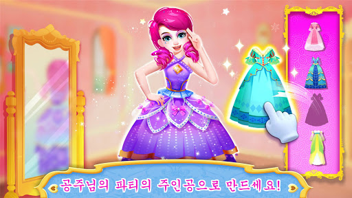 공주님의 옷장에는 연노랑 피시테일 드레스, 핑크색 버블 스커트 같은 세련된 드레스가 많아요. 버블 스커트를 입으면 멋져 보일까요? 입혀 보세요!