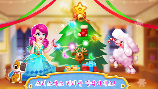 공주님과 애완동물이 파티로 출발했습니다! 파티 장식이 아직 안 끝났다고요? 크리스마스 유색 전등을 매달아 주세요. 종과 크리스마스 양말로 크리스마스 트리를 장식하세요. 크리스마스 선물을 준비하는 것도 잊지 마세요!