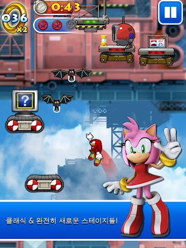 디바이스를 기울여서 터치하는 간단한 조작으로 점프 액션! 스토리 모드에서 Dr. 에그맨의 야망을 물리치고 끝없이 이어지는 아케이드 모드에서는 더 높은 기록에 도전해서 전 세계의 친구들과 스코어를 겨루어 보세요!