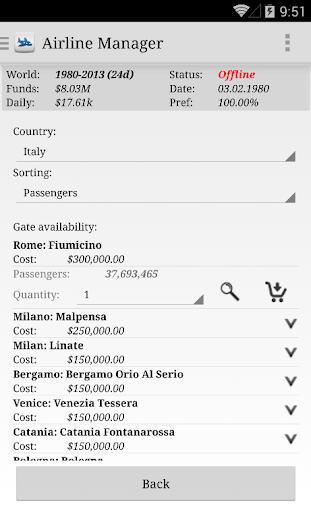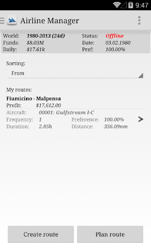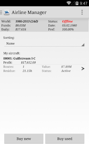 여기에 항공을 만들고 관리 할 컴퓨터와 비교할 수 있습니다.언제든지 경쟁 할 새로운 회사가있을 수 있습니다.이 모든 것은 완전히 무작위입니다.각 세계 공항에서 문을 구입하거나 항공기를 사거나 판매하여 새로운 경로를 만들 수 있습니다.