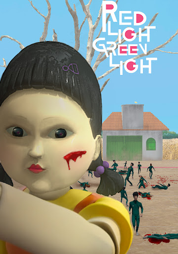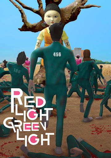오징어 팀은 엄격한 경제적 필요와 비틀 거리는 빚을 직면 한 사람들이며 현금 상금을 위해 게임에서 경쟁하는 생존 게임을 시작합니다. 비록 트위스트가 있습니다. 그래도 게임이 실패하면 살해 될 것입니다. 유명한 "붉은 빛, 녹색 불빛"노래를 한국어로 노래하는 선수 앞에서 거대 인형이 스탠드가 있습니다. 녹색 조명으로 이동하고 나중에 움직임이 감지되면 "빨간색"을 멈추어야합니다. 그 플레이어가 제거됩니다.