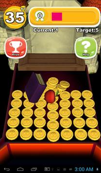 By pushing coins into the coin pusher machine, you stand a chance to win exciting prizes including apple,book,or treasure box into your hands.