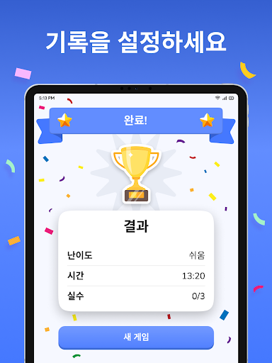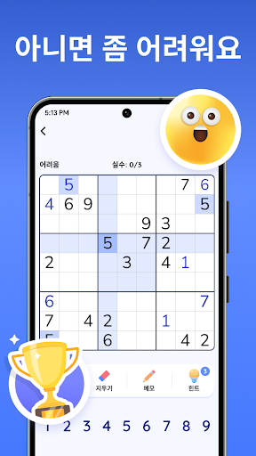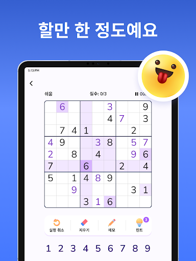 깔끔한 디자인과 대비색을 즐기세요. 종이로 된 스도쿠와 동일하며 휴대폰이나 태블릿으로 즐길 수 있는 무료 스도쿠 퍼즐 게임입니다. 게임하며 스트레스를 날려 버리세요.