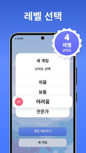 원하는 레벨을 선택하여 기술을 향상시키세요. 쉽게 생각하거나 열심히 고심해보세요. 쉬운 레벨로는 긴장을 풀고 복잡한 생각에서 벗어나세요. 더 어려운 레벨로는 논리적 문제를 풀어보는 연습을 해보세요.