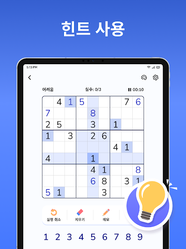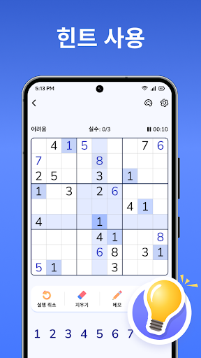 도움이 필요하면 힌트를 사용하세요 - 실제 스도쿠 해결사가 되세요. 신기록을 새우고 친구와 경쟁하고 플레이한 시간과 실수 갯수를 비교해보세요. 최고의 플레이어가 되세요!